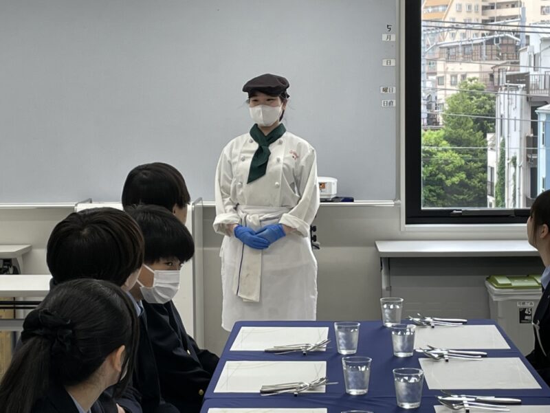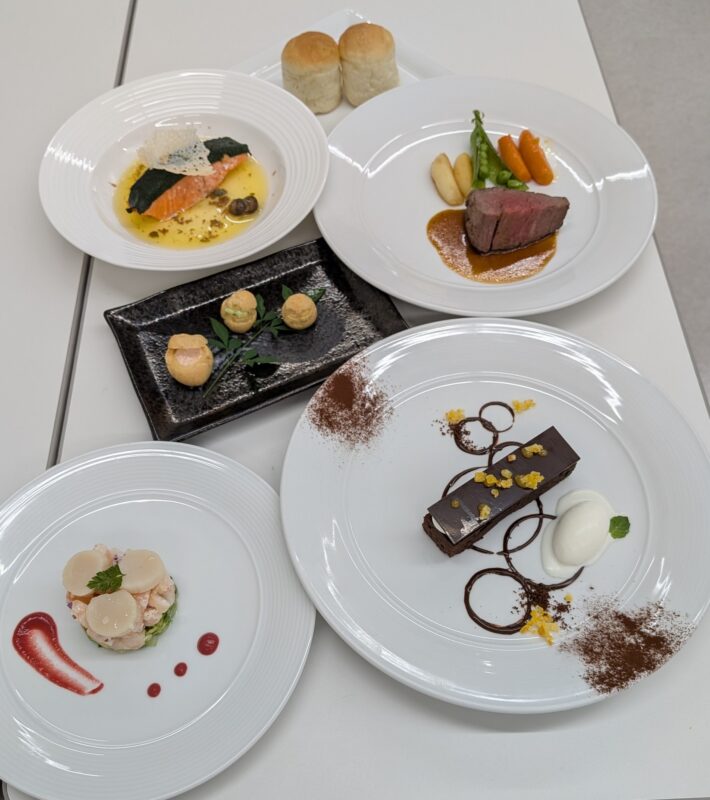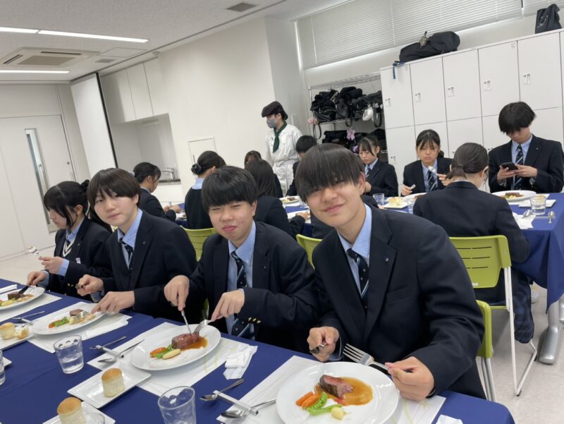 このおもてなし会は学科恒例の行事で、3年生が作ったコース料理を1年生に提供するというものです。