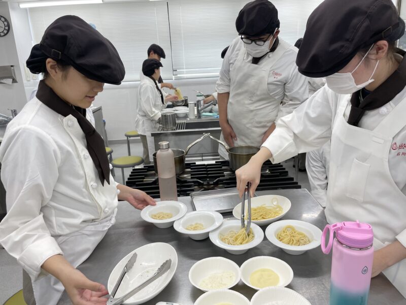 生徒たちは、「身近な料理にも多くの工夫や歴史があることを知った」「同じパスタでも条件によってこんなに変わるのは驚きだった」など、食文化の多様性や奥深さに関心を高めることができ、大変有意義な学びの時間となりました。